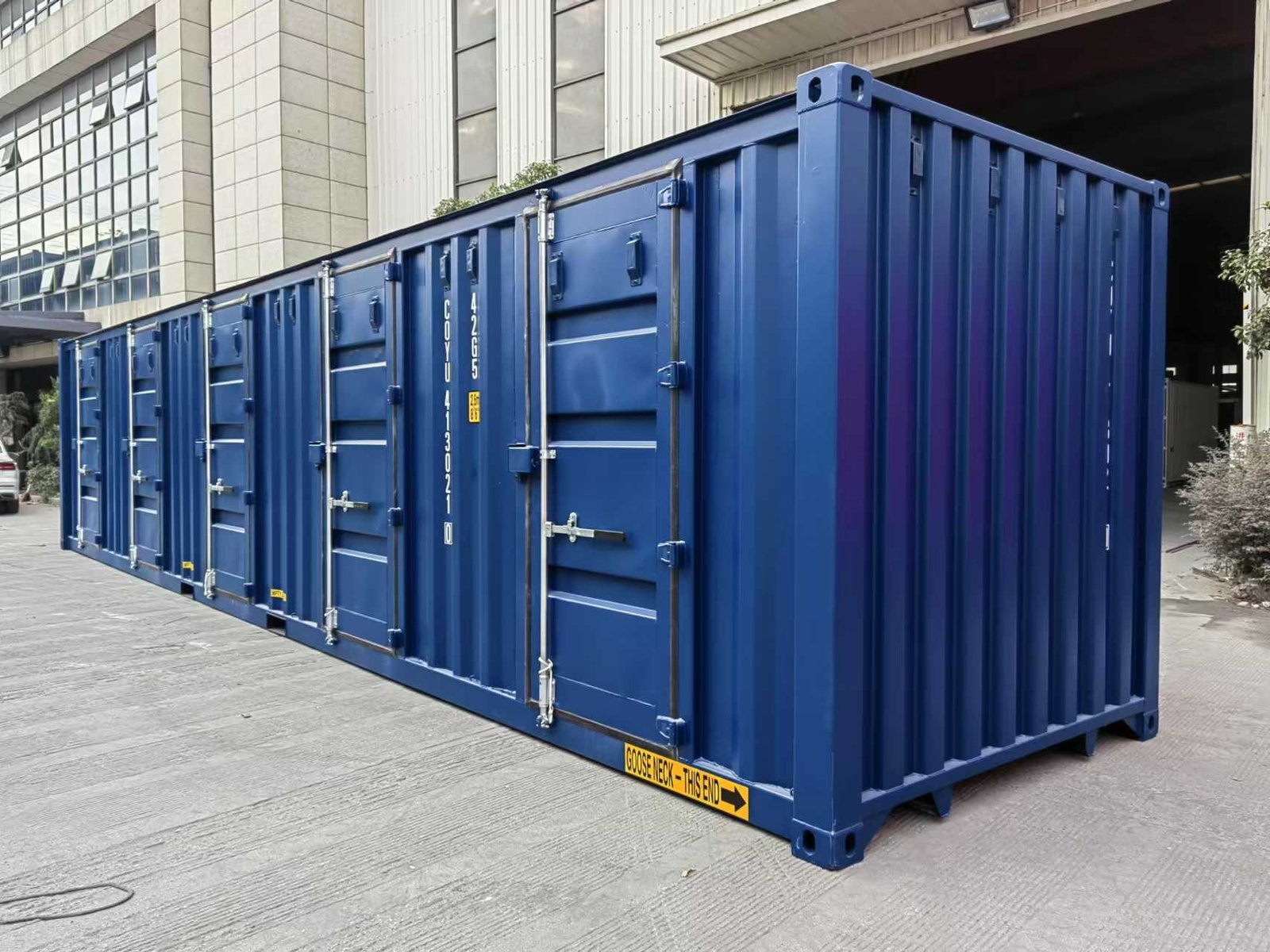 Conteneur maritime 40 pieds avec 04 portes robuste et polyvalent, disponible en version occasion ou premier voyage. Entièrement étanche à l’eau et à l’air, avec structure en acier Corten, plancher marin 28 mm et double porte à ouverture 270°.